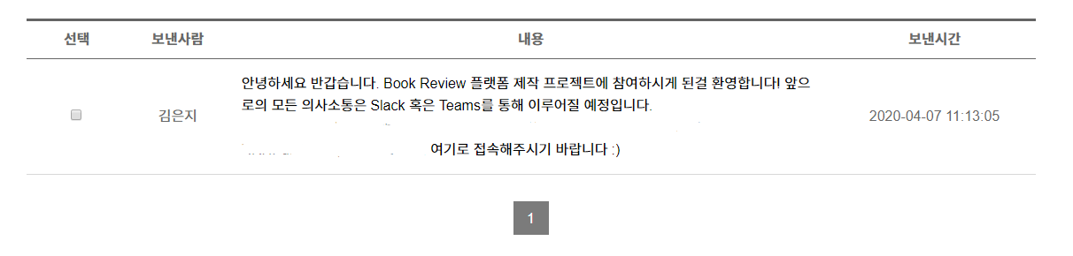 홈페이지에 들어가니 쪽지 한통이 와 있었다.