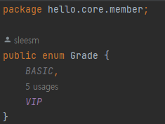 이번 스프링 예제에서 사용한 코드로 그냥 Grade enum 클래스를 만들어 BASIC과 VIP를 선언해주기만 하면 되었다!